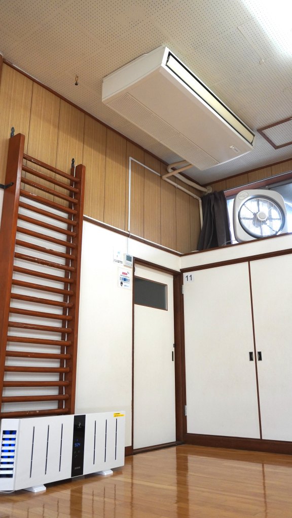 2Fスタジオは排気量の多いエアコンなどを設置。貸しスタジオとしての利用を考え、エチケット等に関するご案内も掲示