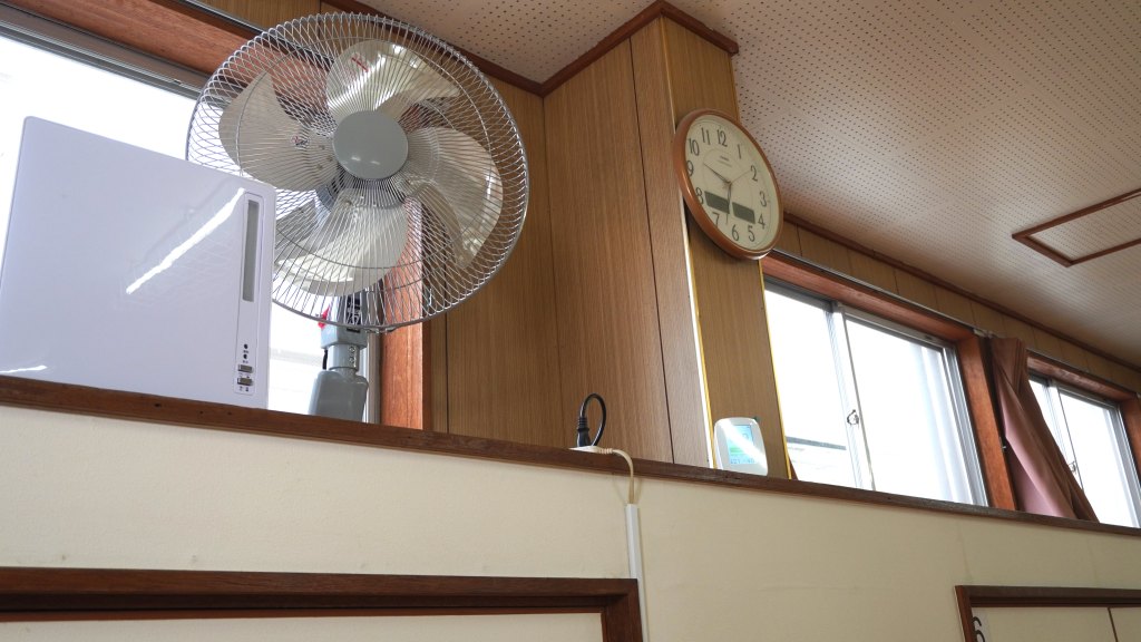 窓には送風機を設置し、空気の入れ替えを短時間でできるように工夫しています。また、乾燥する冬季などは、加湿器も稼働させています。